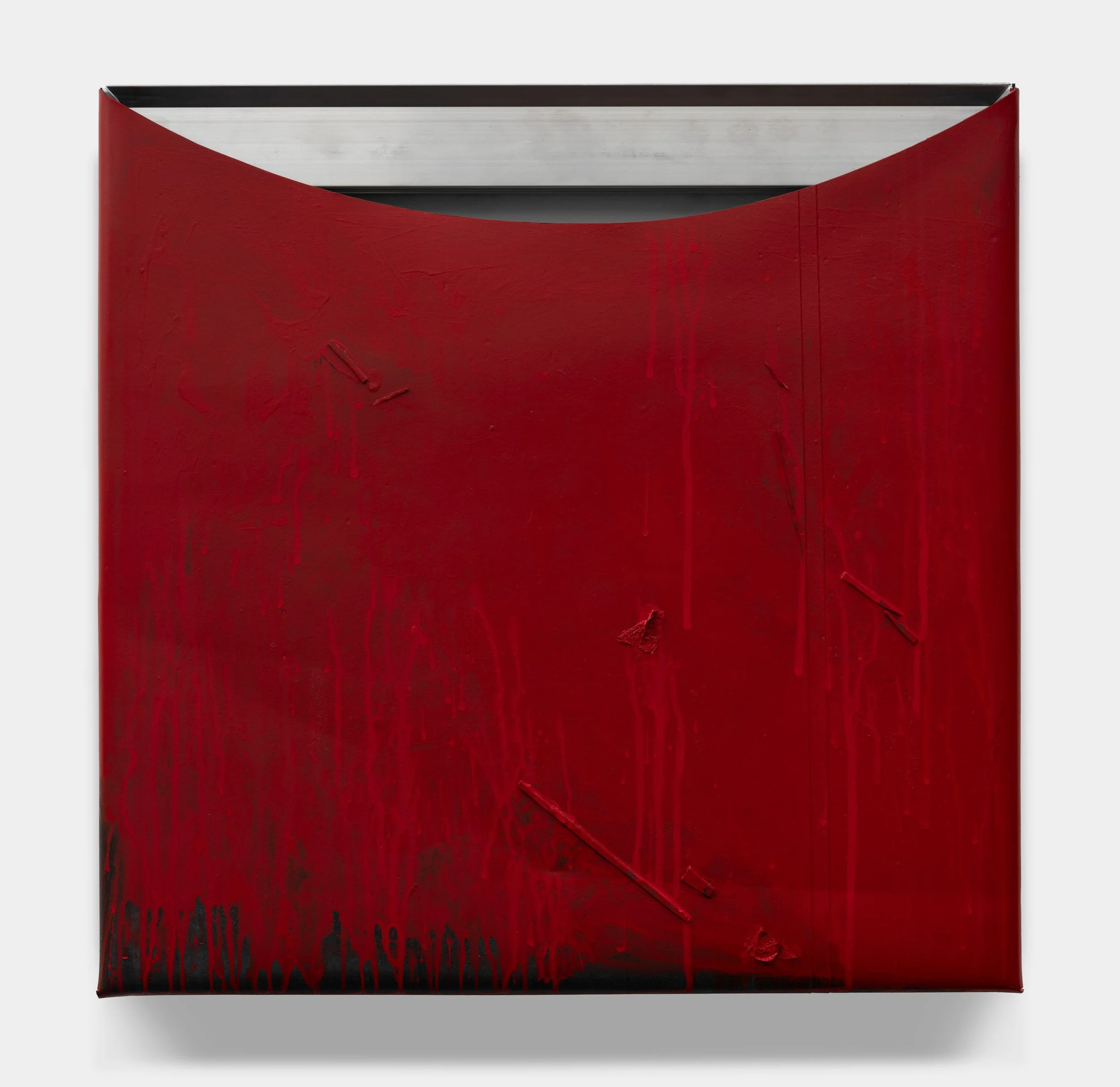 Reginald Sylvester II (b. Jacksonville, NC, USA, 1987; lives and works in Jersey City, NJ) creates large-scale paintings and sculptures that trace the generative threshold between the two mediums. Working predominantly in abstraction, he expands the language of his painting practice by incorporating materials such as rubber, tarp, aluminium and steel. His singular approach lends his paintings a sculptural presence and imbues his sculptures with a painter’s sensibility.