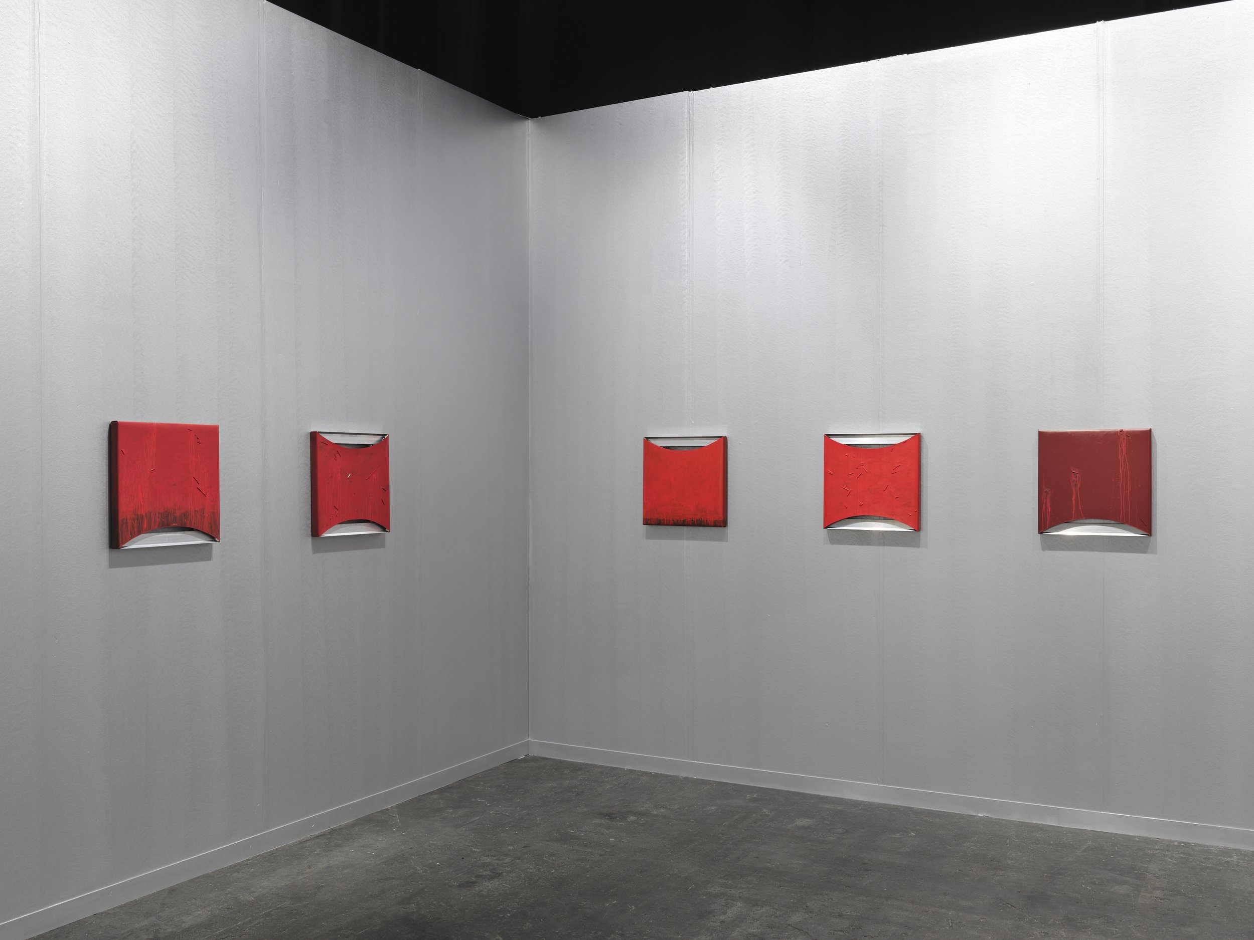 Started in 2022, the series marked a shift in Sylvester’s practice, reorienting his abstraction toward materially restrained, contemplative compositions conceived as acts of offering. Central to this body of work is Sylvester’s use of industrial rubber, a material bound to histories of colonial extraction. Through processes of cutting, stretching and accumulation, rubber is reconfigured into near-monochromatic surfaces that hold a dense materiality and offer a powerful emotional register. Moving away from traditional canvas, the Offering series foregrounds charged materials and bodily processes, informed by passages in the Bible, Abstract Expressionism and Art Povera. This presentation follows his recent solo institutional exhibition at Limbo Museum in Accra, Ghana.